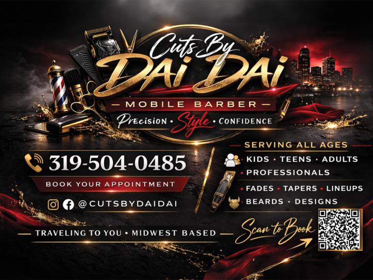 Request your mobile barber appointment in Waterloo or Cedar Falls. Complete the form below and we will follow up to confirm your time and location.
